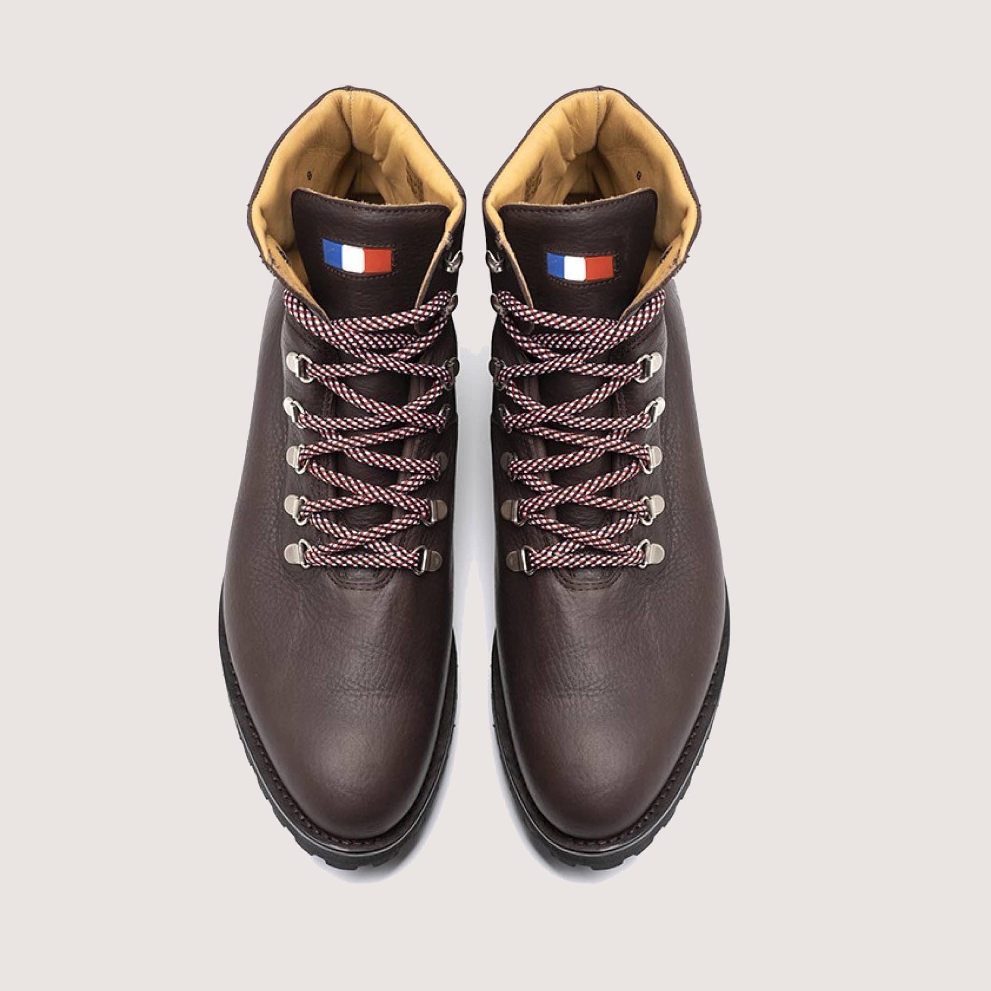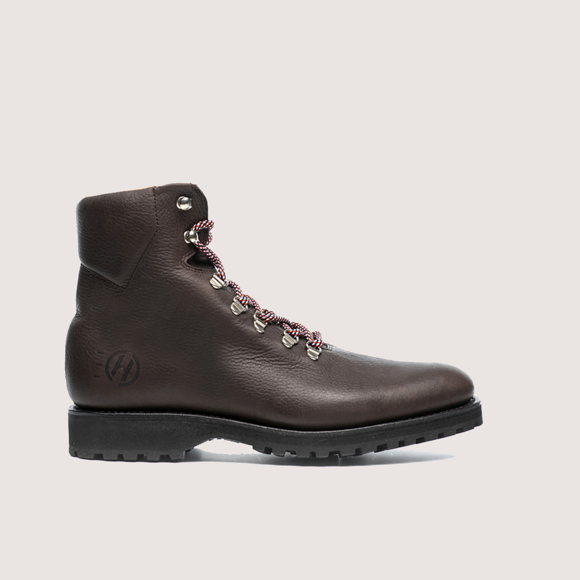 La Mountain Boot trouve son inspiration dans les brodequins de randonnée en cuir. Résistantes et chaudes, elles sont utilisées à l’origine par les grimpeurs. Elles se reconnaissent par une esthétique plus massive avec des semelles épaisses pour affronter tous types de terrain et tous types de temps.