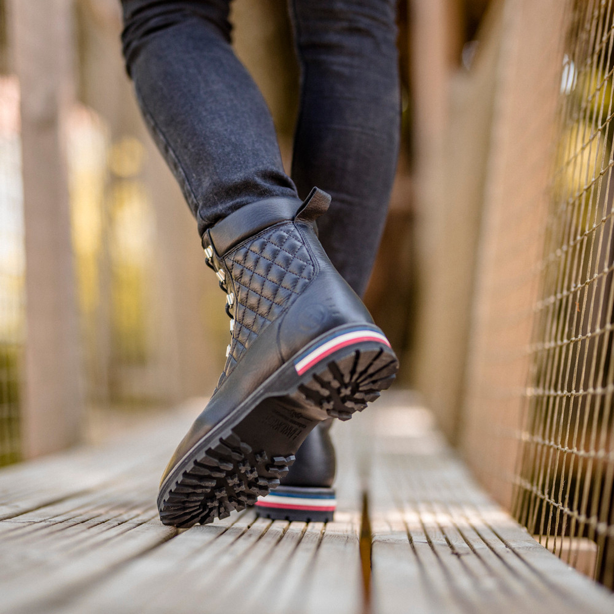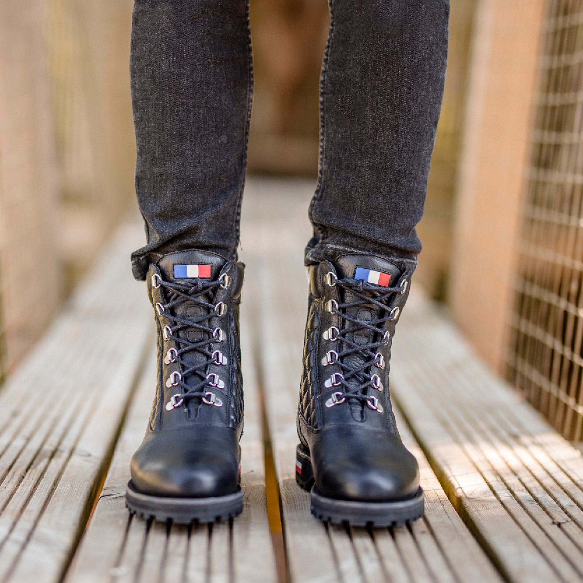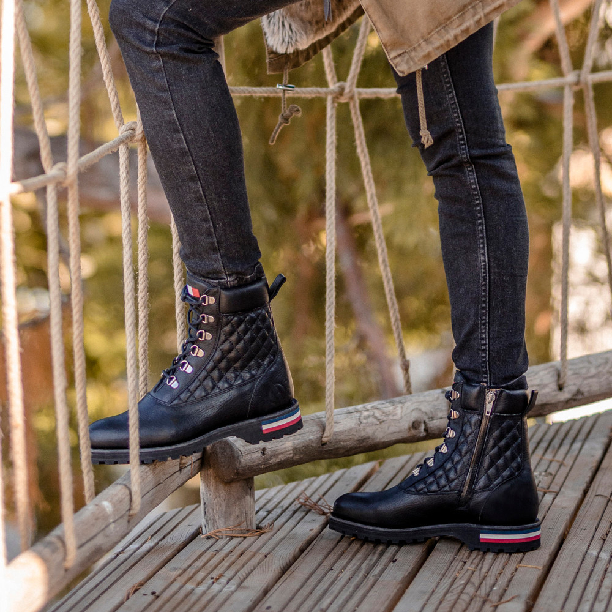 Cette boots est directement inspirée des brodequins de montagne. Plus qu'une simple chaussure, la mountain boots Vercors est un concentré de notre histoire et de notre savoir-faire. Une boots pour femme en cuir matelassé pour laquelle nous avons fait le choix d'utiliser des passe lacets. Tout a été pensé pour le confort de marche en toutes circonstances : Vercors est dotée de soufflets d’étanchéité de chaque côté de la languette matelassée et d'une semelle compensée noire avec inserts bleu blanc rouge.