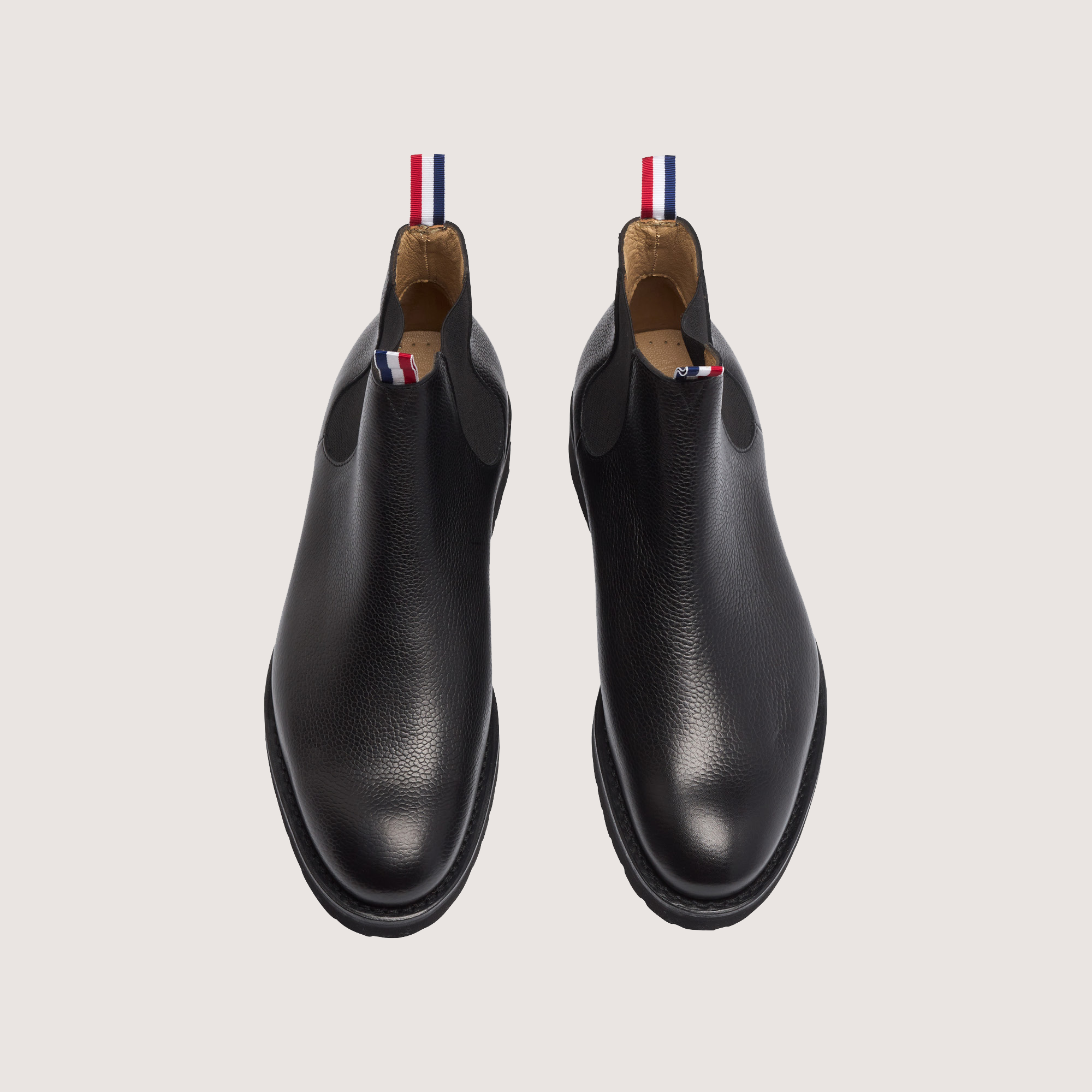Chelsea Boot pour homme en cuir grainé Highland noir. Semelle gomme Xlight. Cousu Goodyear.