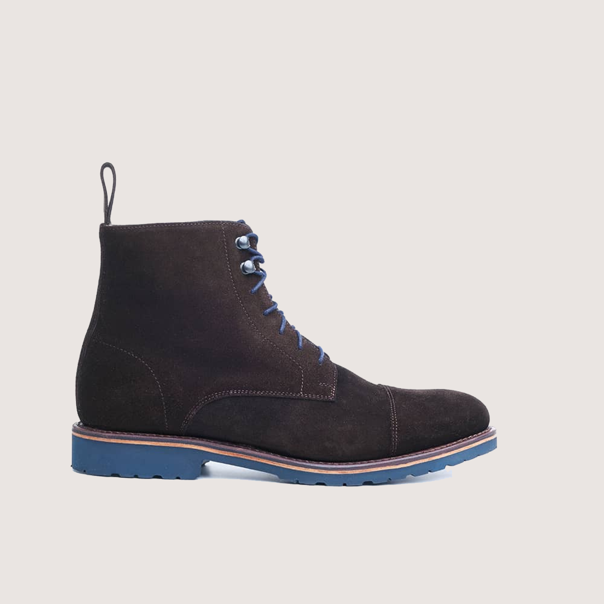 Boots à lacets pour homme en Cuir velours marron  et semelle gomme. Montage Cousu Goodyear.
