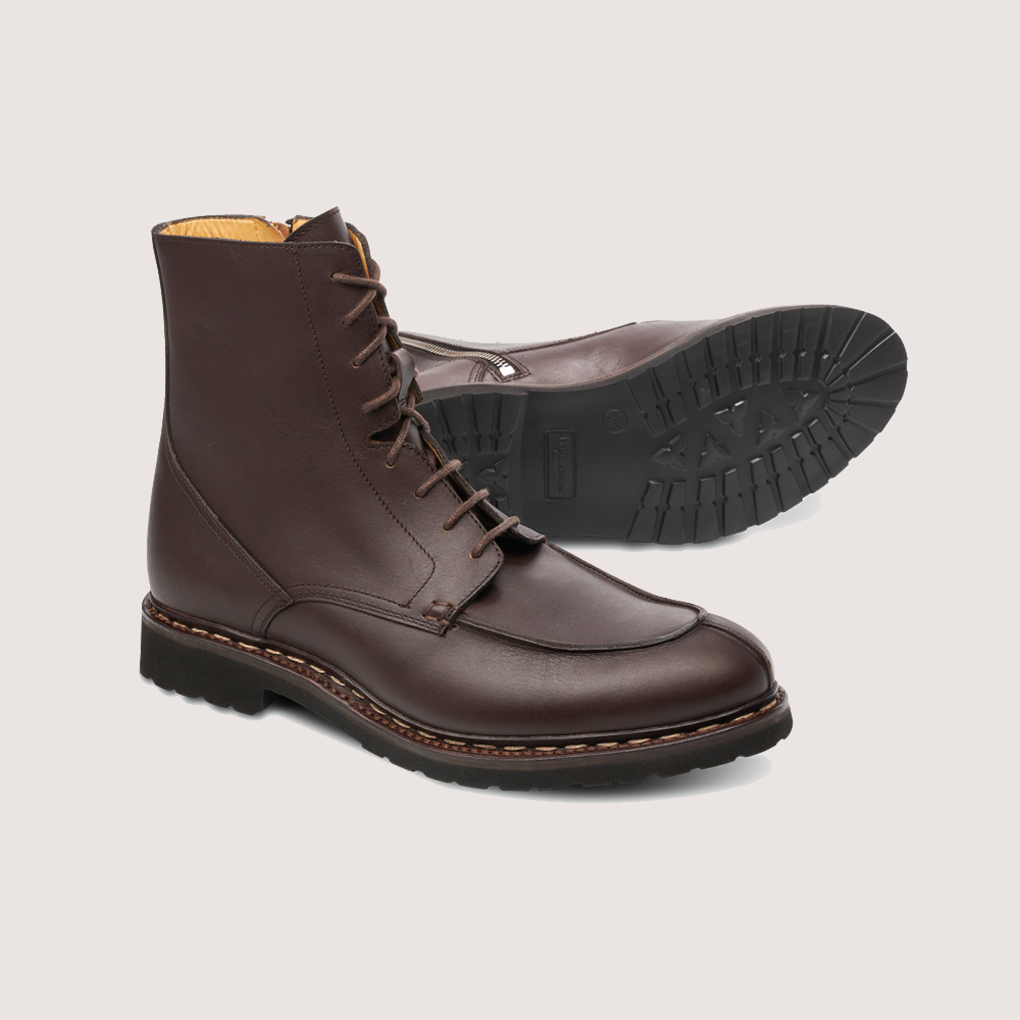 Bottines à lacets Lans pour homme en cuir hydro mocca. Semelle intérieure Ortholite. Semelle extérieure X-Light. Zip intérieur. Montage cousu Norvégien
