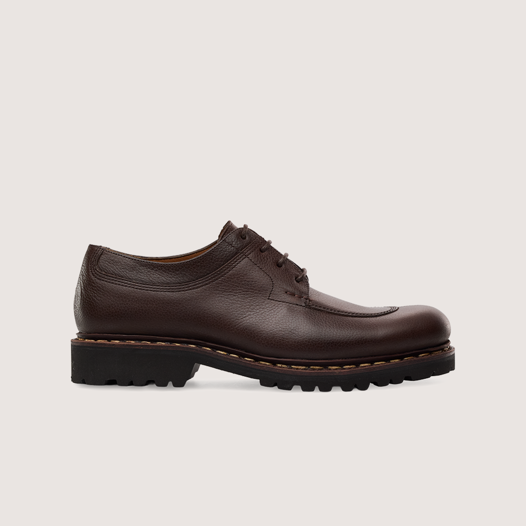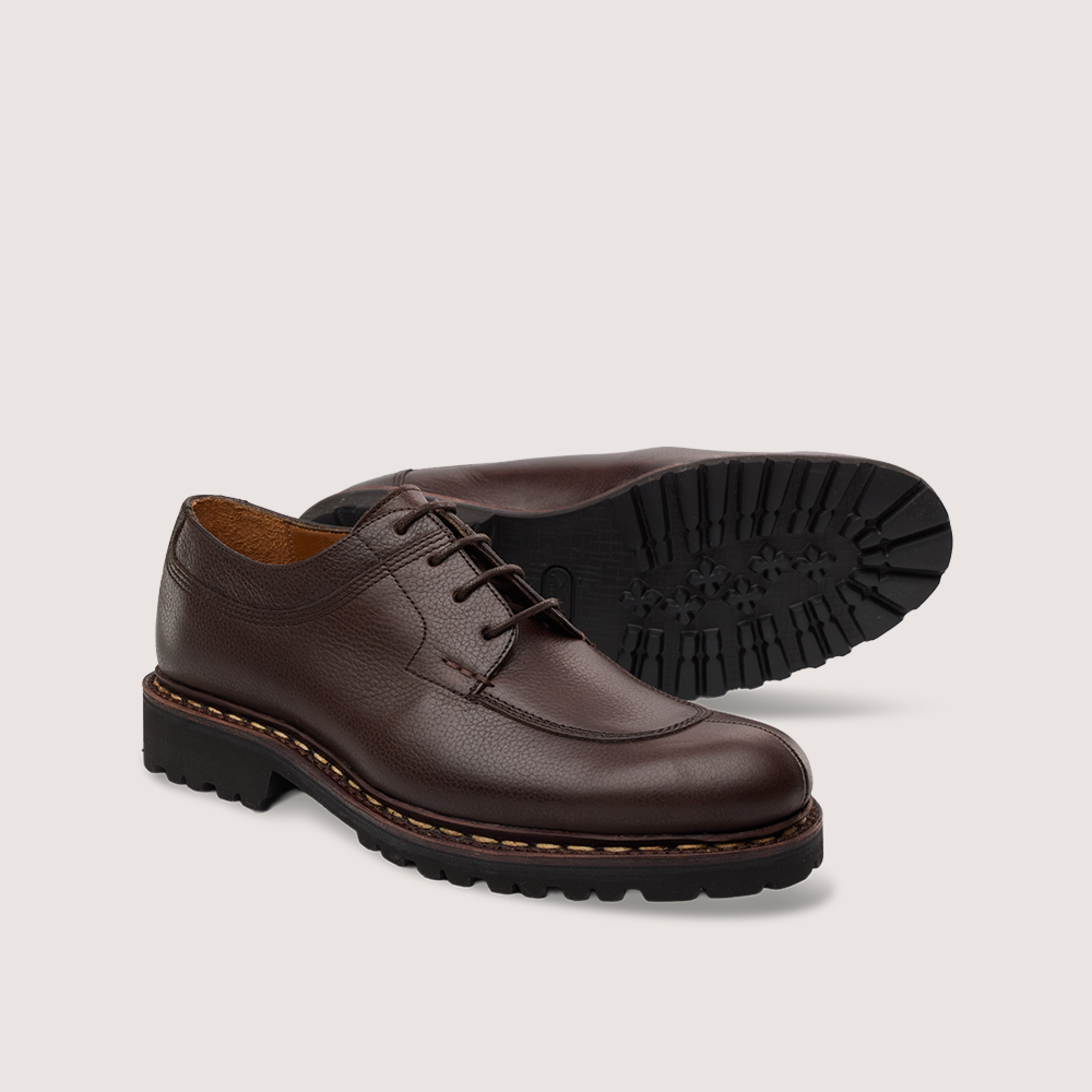 Derby femme en cuir choco réalisé en cousu norvégien , semelle x-light. Intérieur cuir.