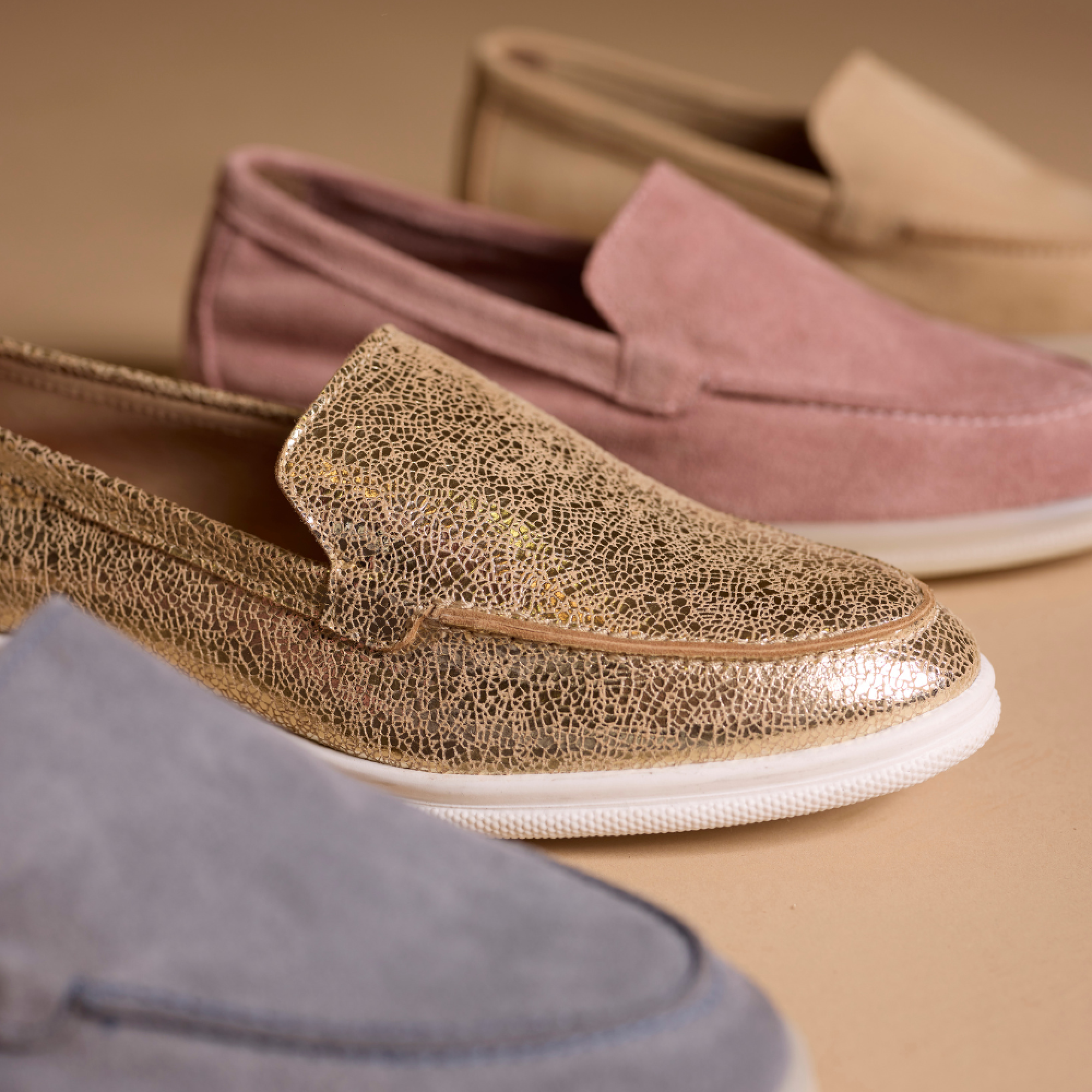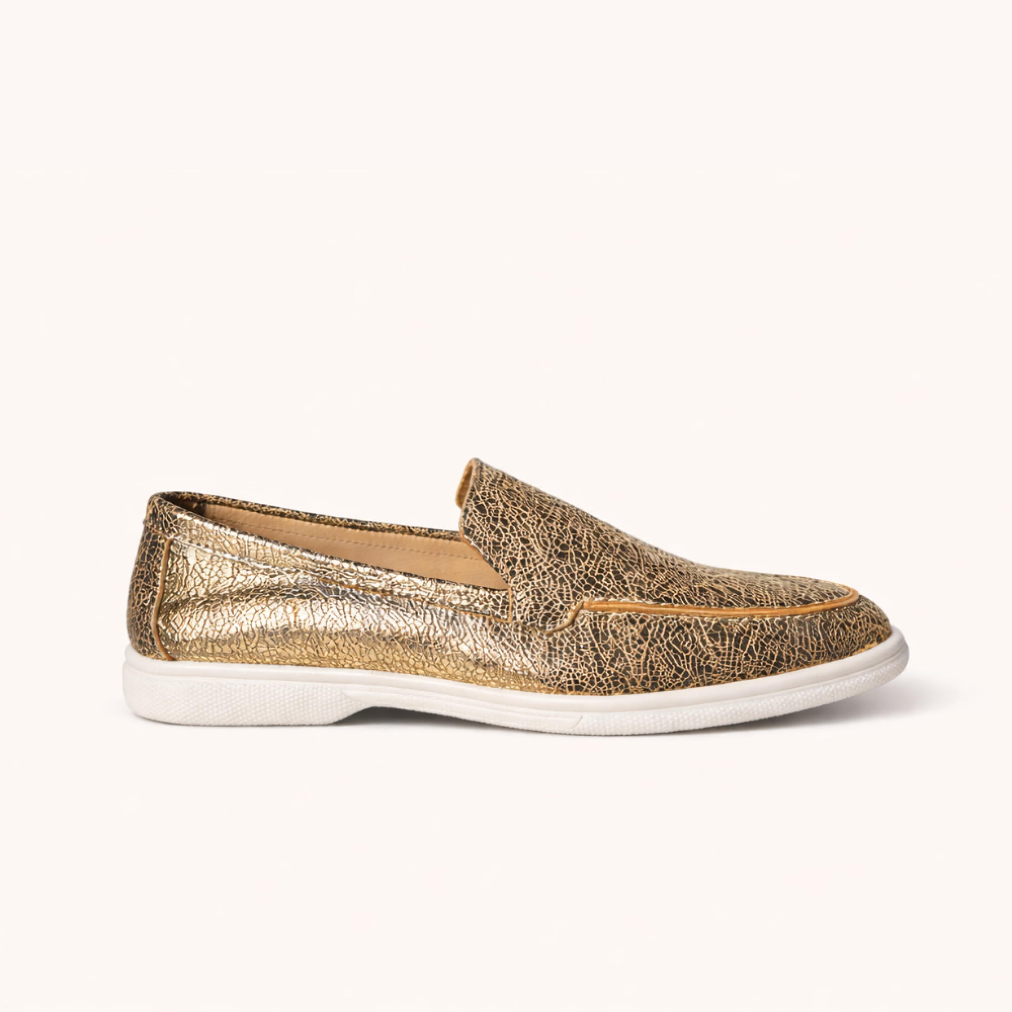 Mocassin souple pour femme, réalisé en cuir gold, semelle intérieure à mémoire de forme en cuir, semelle extérieure antidérapante en gomme