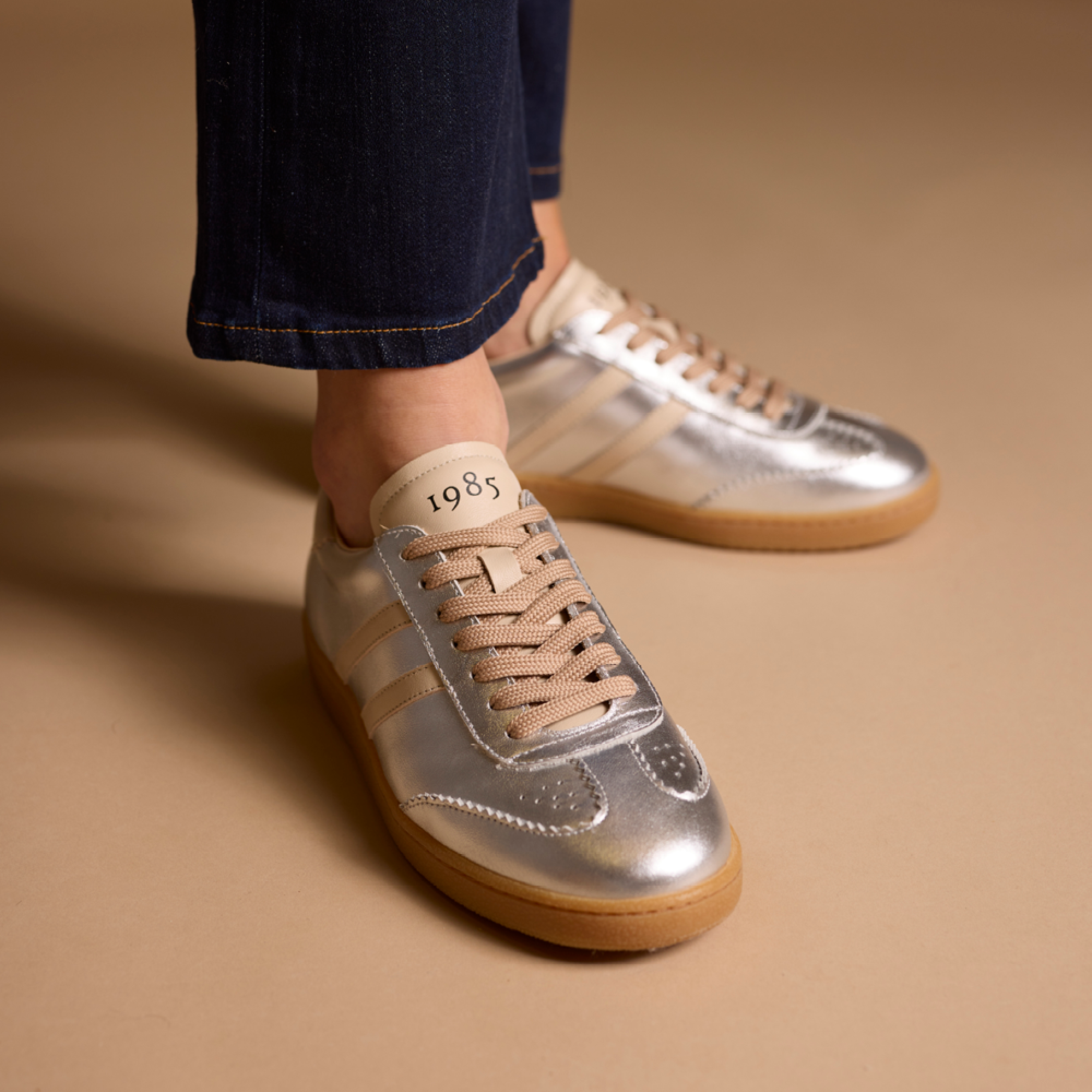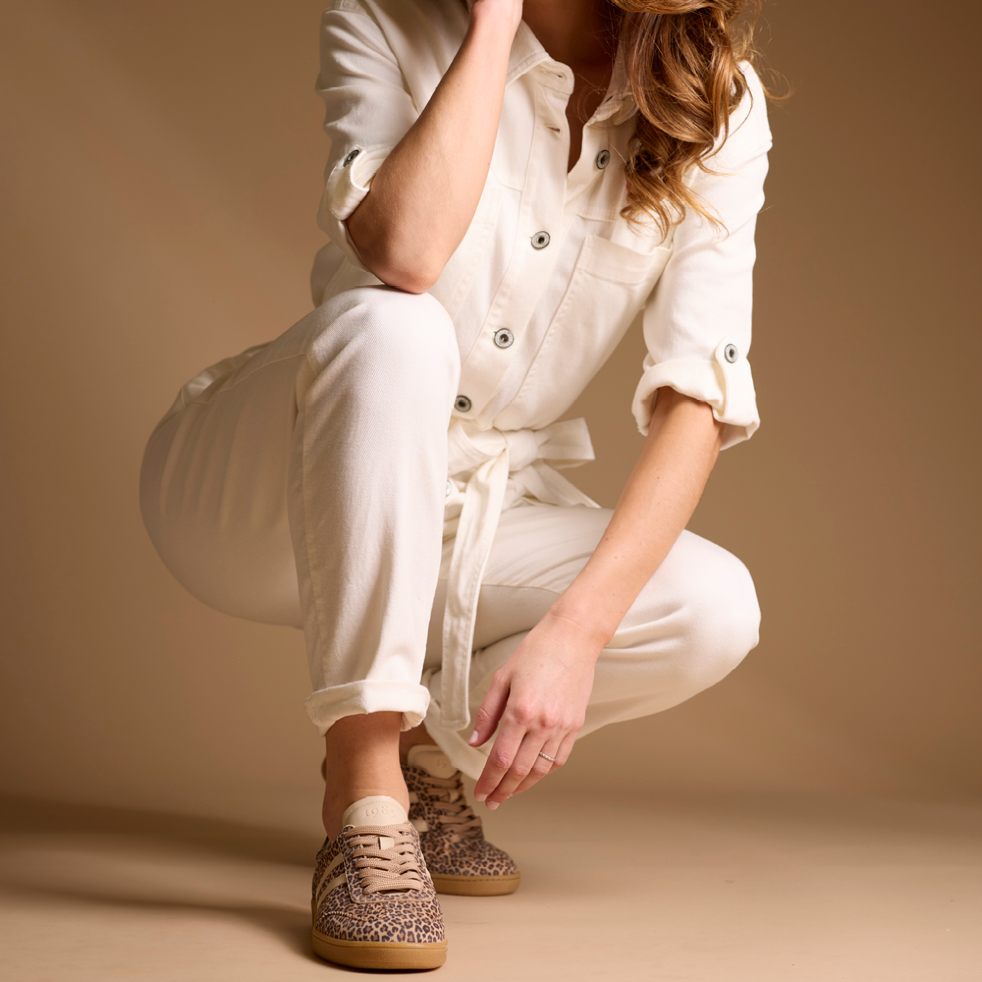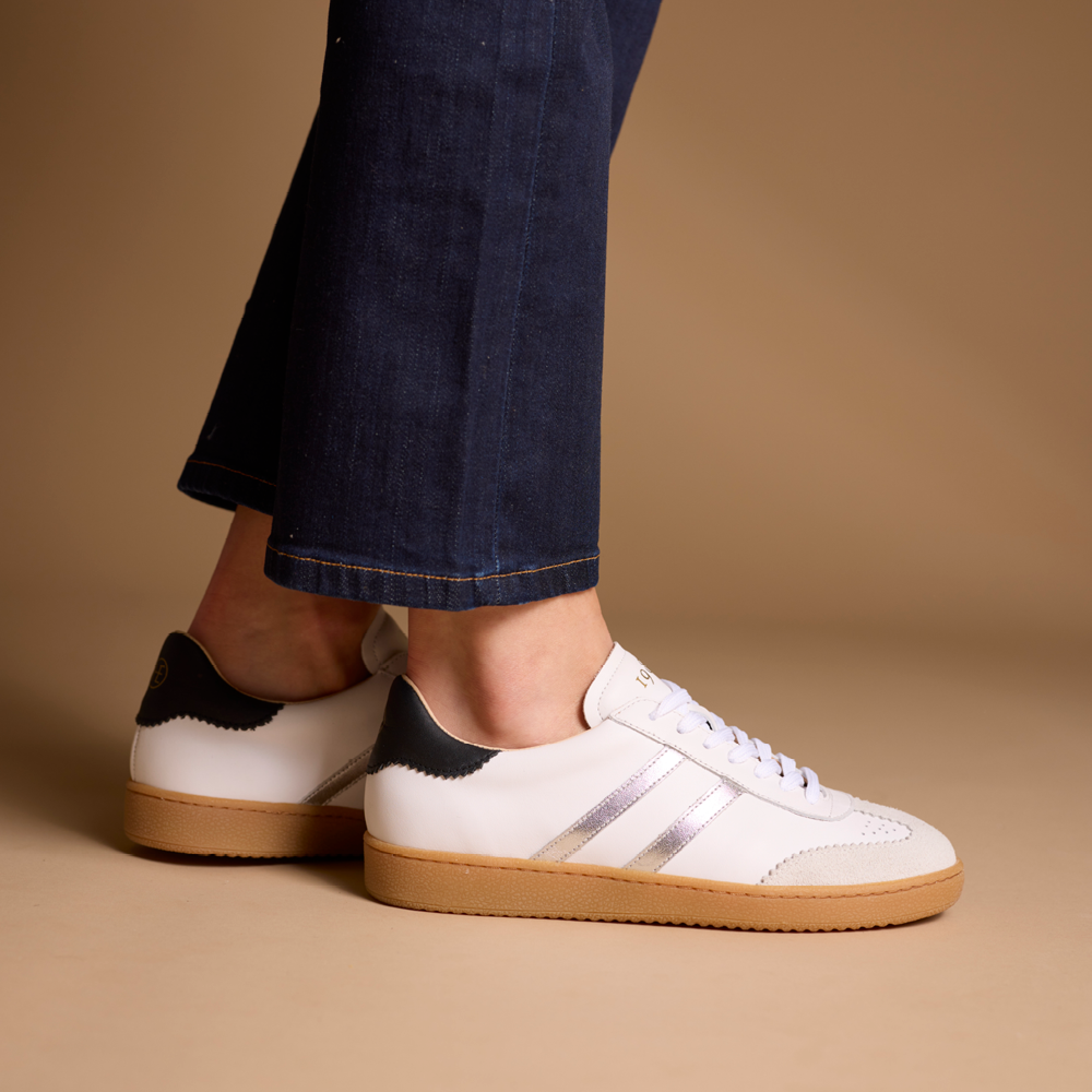 Basket pour femme en cuir suède imprimé léopard et empiècements couleur crème, doublée en cuir, semelle intérieure à mémoire de forme amovible, semelle gomme