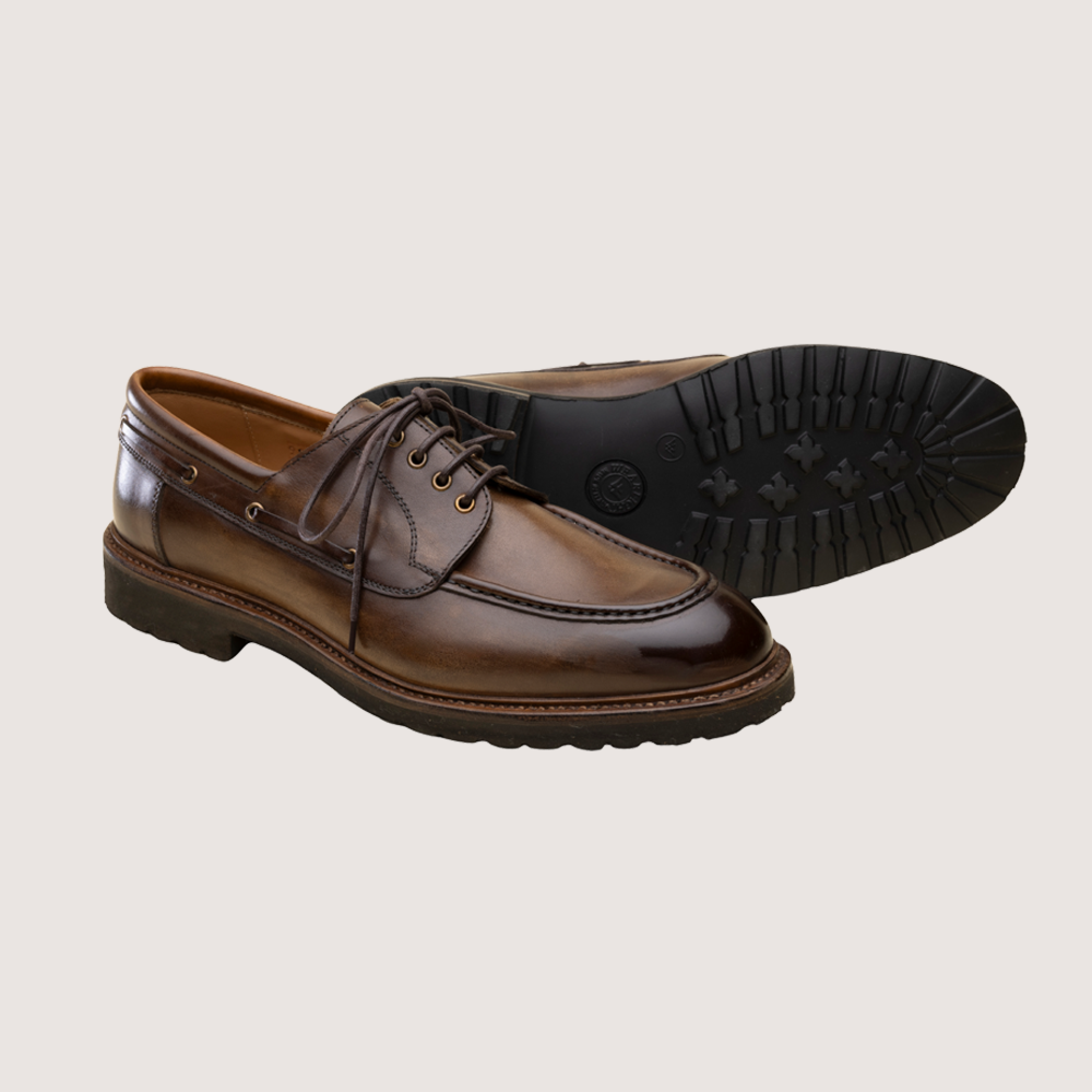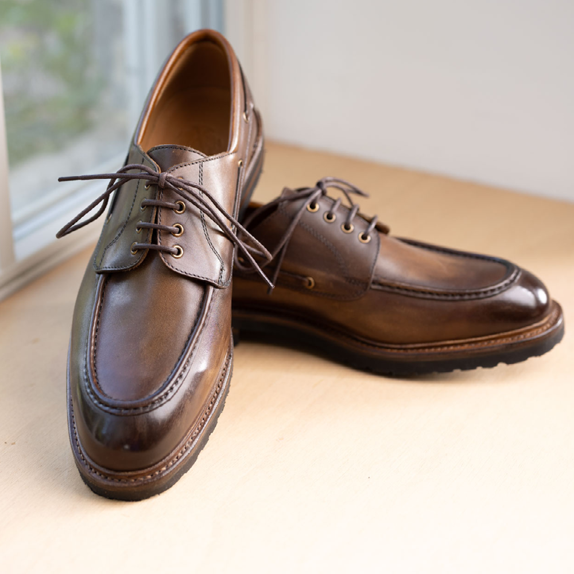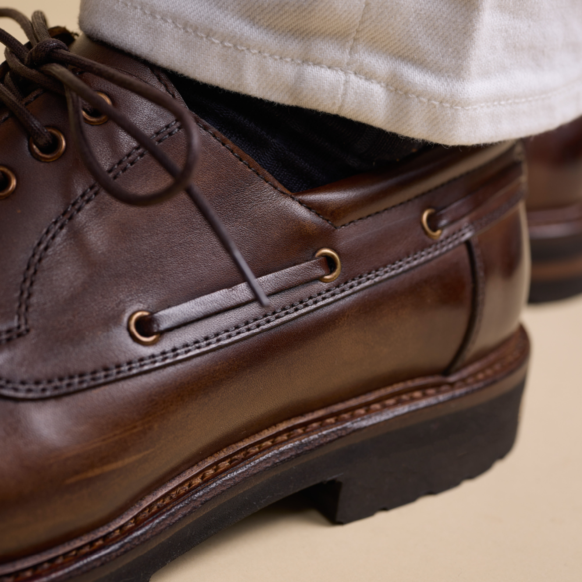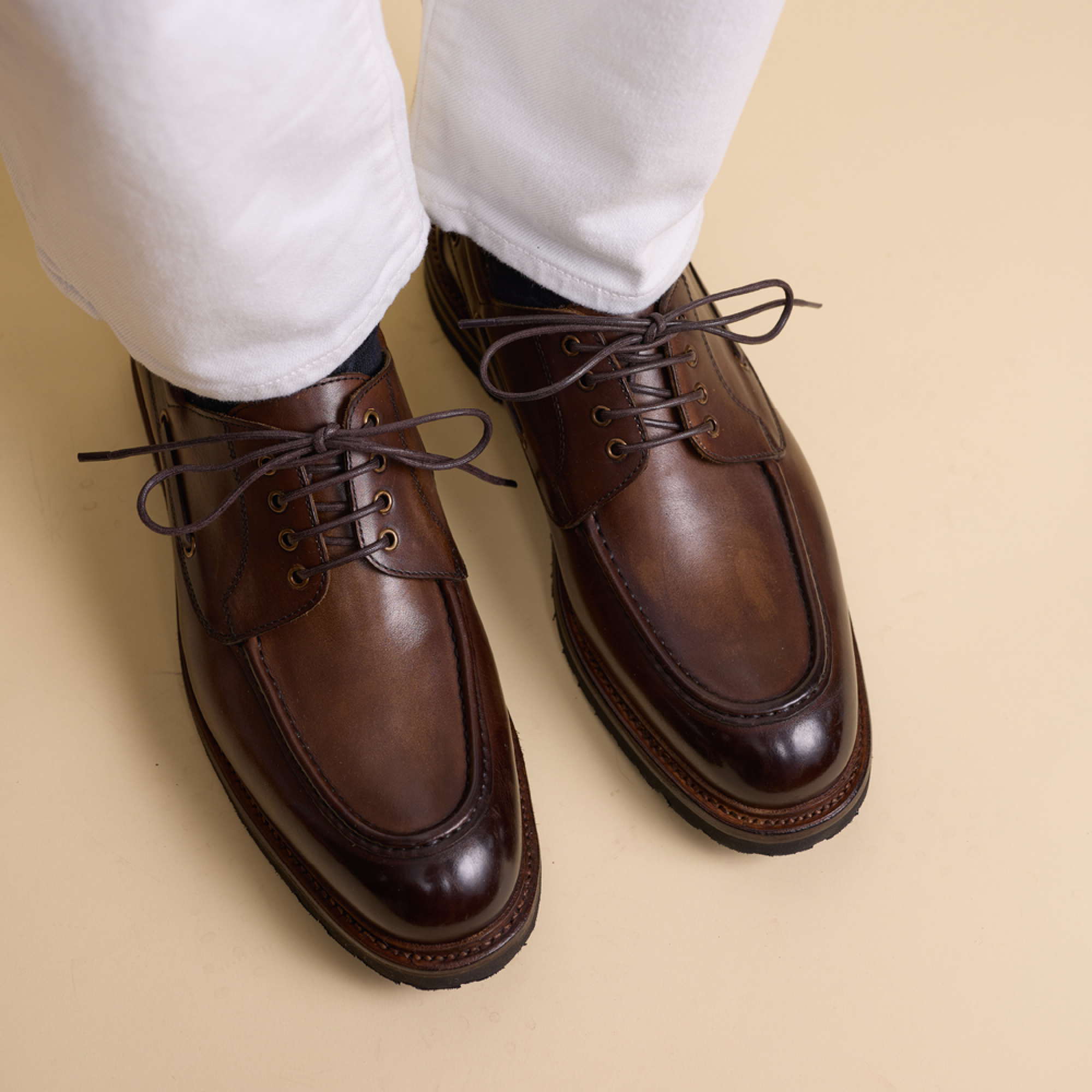 Derby Forêt Marron, montage cousu goodyear, semelle x-light, intérieur cuir.