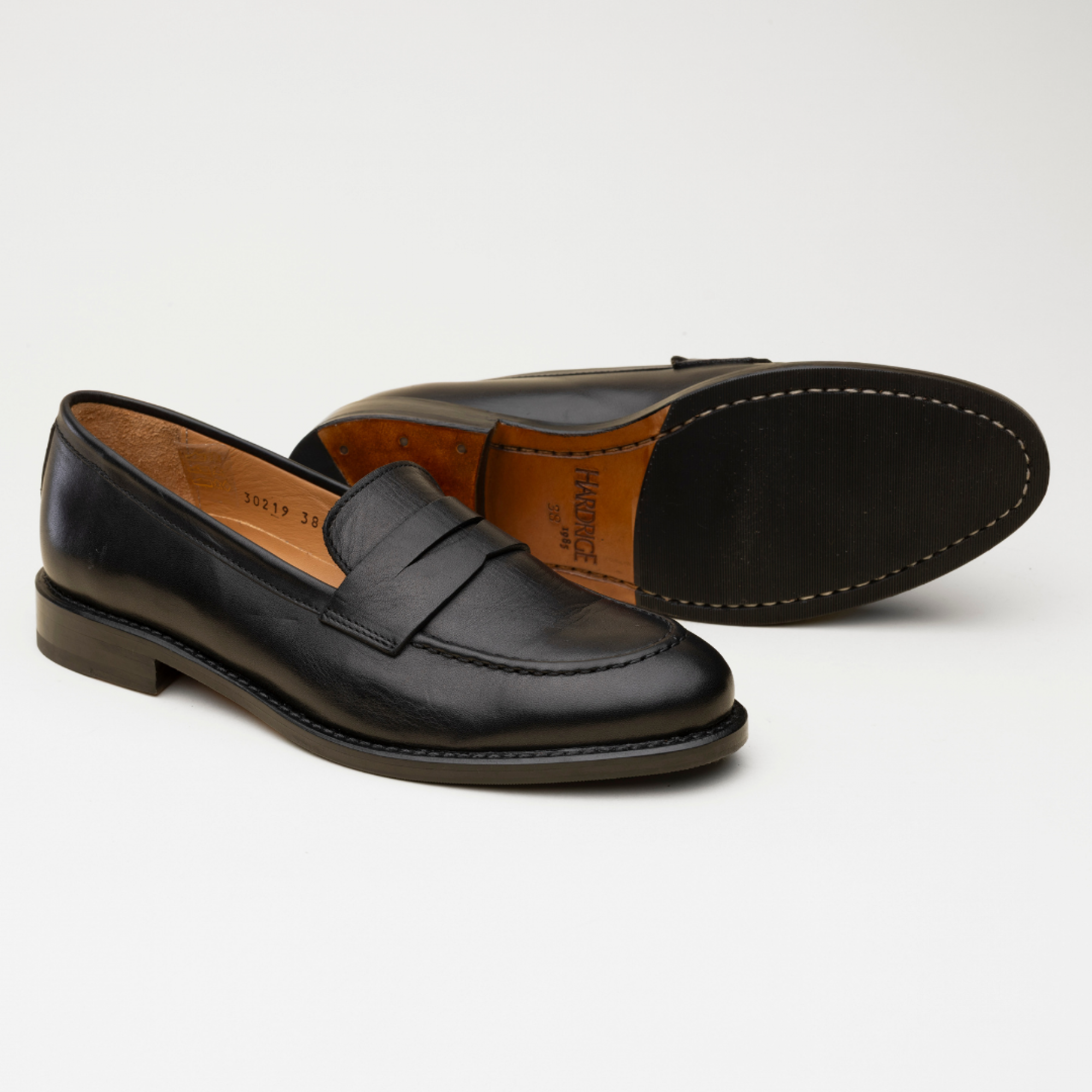 Mocassin Sophie femme, cuir noir, semelle cuir avec patin gomme. Montage cousu blake,